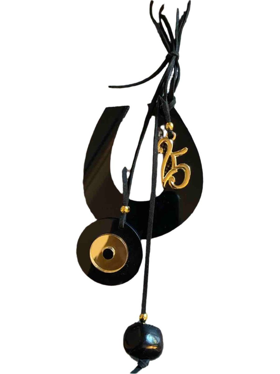 - Black & gold acrylic evil eye motif